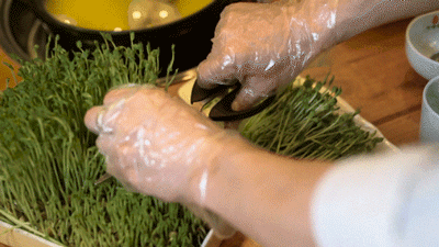 活体豆苗端上来就像是一盆小绿植,摇头晃脑特别可爱,吃之前自己剪一撮下锅,还多了份手工劳作的乐趣,好吃又好玩。