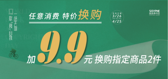 活动期间,在西西弗书店任意消费加9.9元即可换购指定图书、指定不二文创商品2件。