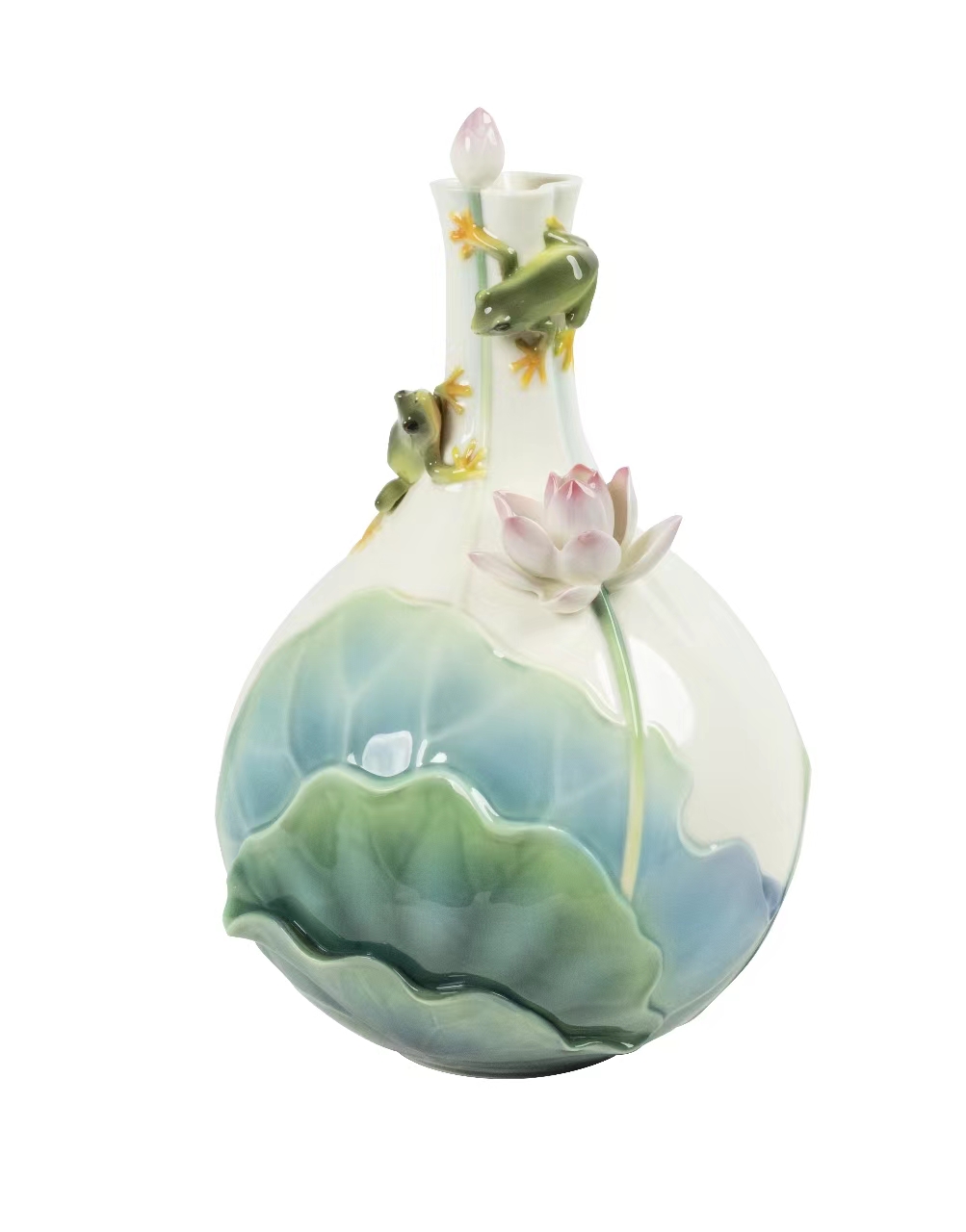 FZ03966 荷乐生财 青蛙瓷瓶